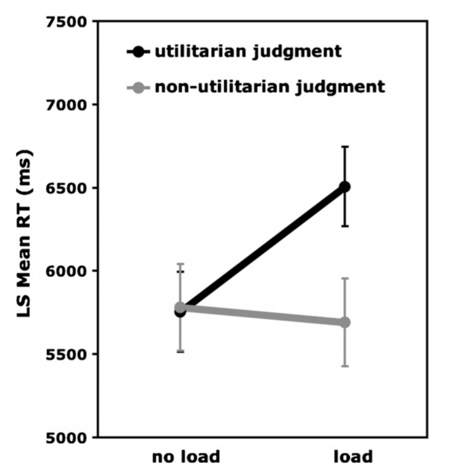 prediction: ⇧cognitive-load → ⇧utilitarian slower