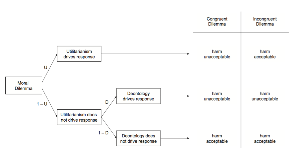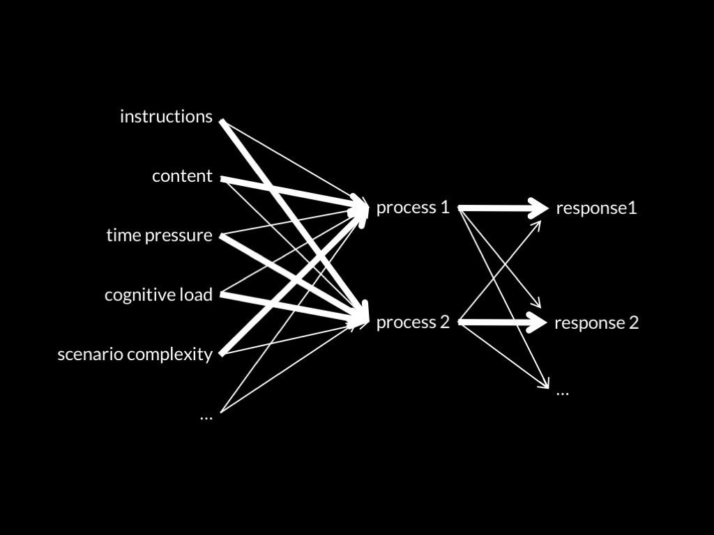 aux. hypothesis: The slow process is responsible for characteristically consequentialist responses; the fast for other responses.