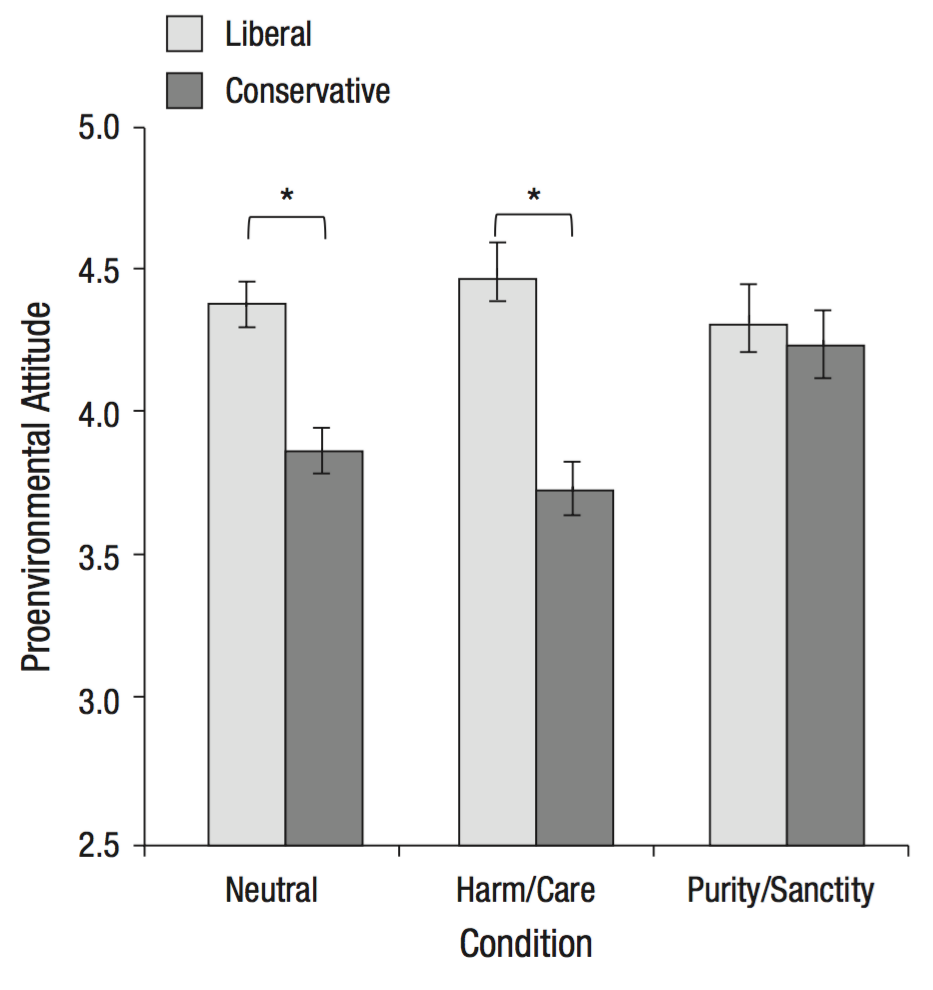 ‘we hypothesized that exposing conservatives to proenvironmental appeals based on moral concerns that uniquely resonate with them will lead them to view the environment in moral terms and be more supportive of proenvironmental efforts.’