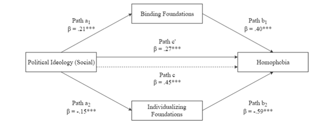 ‘political ideology had an indirect effect on homophobia most consistently [...] through the binding foundations’ (Barnett et al., 2018, p. 1192).