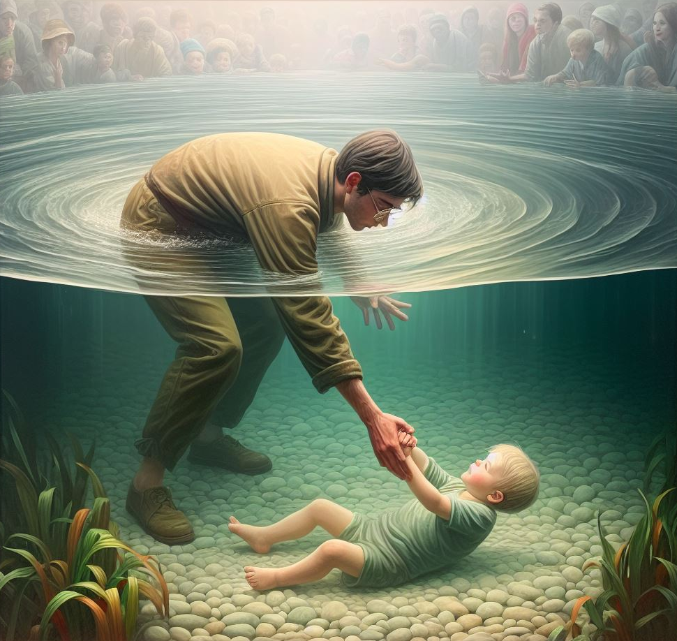 I alone see many children drowning in it, and I alone can save one of them.